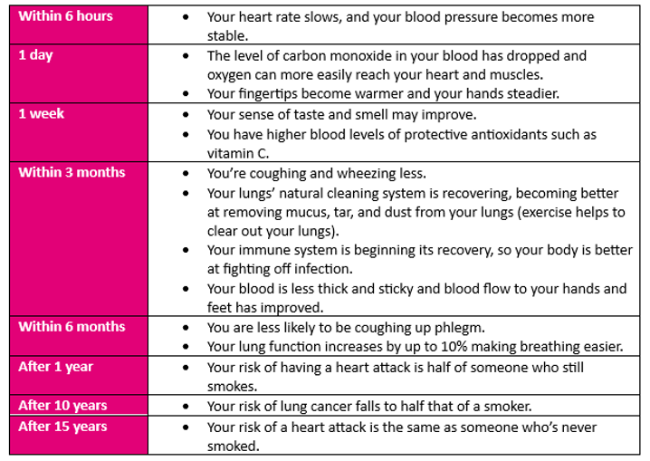 • Local stop smoking programmes– combining stop smoking aids with local expert support increases the likelihood of quitting smoking by three times.